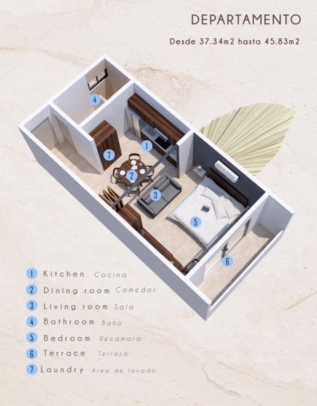 tambien contamos con 50 Departamentos tipo estudio con balcón.