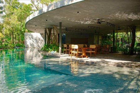 Es un gran desarrollo ubicado en la zona más exclusiva de Tulum, su arquitectura refleja un concepto contemporáneo y orgánico, se juega con las volumetrías para generar sensaciones de movimiento en la arquitectura.