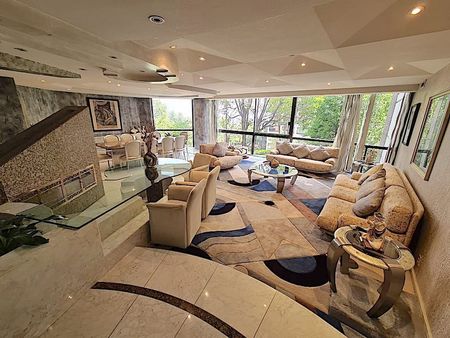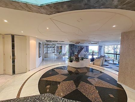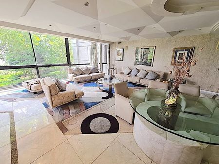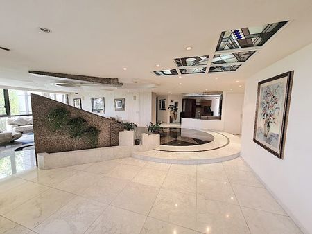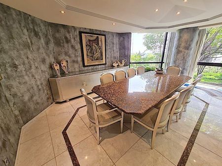 El departamento mide 420 mts mas 12 mts de balcón, se encuentra en TRIANON, reconocido residencial por su exclusividad, son solo 3 torres, cuentan con concierge y valet parking en cada torre, modernas y amplias áreas comunes: hermosos jardines con senderos y áreas con juegos infantiles; gimnasio, alberca techada, alberca exterior con asoleadero y cafetería, 2 canchas de tennis, cancha de basket ball, ludoteca, salón de usos múltiples, salón de fiestas.