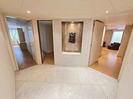 El elevador llega directo al departamento, que goza de agradable distribución, muy buena luz natural, cuenta con recibidor con medio baño y closet para visitas, sala, comedor, family, despacho, cocina equipada con refrigerador subzero, desayunador, area de lavado y cuarto de servicio con acceso independiente, 3 amplias recamaras cada una con vestidor y baño, la principal, con walking closet y jacuzzi. 4 cajones de estacionamiento y 1 bodega