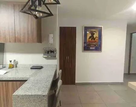 La amplia estancia de sala y comedor se convierte en el corazón del hogar, inundada de luz natural gracias a sus ventanales de piso a techo y un encantador balcón que extiende su espacio social. La cocina integral se presenta en un moderno concepto abierto, completamente equipada con barra y encimeras de granito, ideal para quienes disfrutan de la gastronomía y la convivencia.
