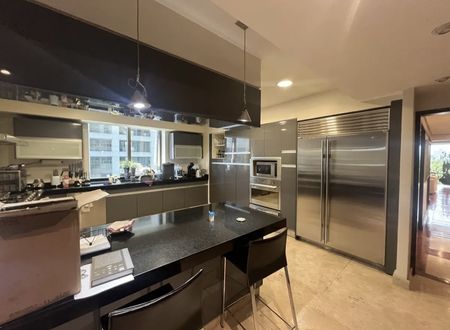 El departamento cuenta con calefacción, aire acondicionado, lavandería y cuarto de servicio además de tener 4 estacionamientos y bodega.