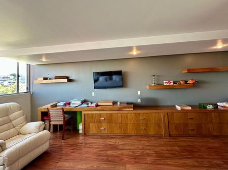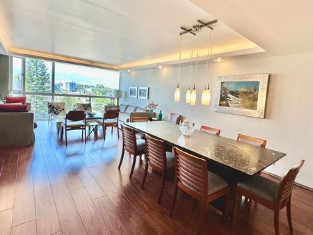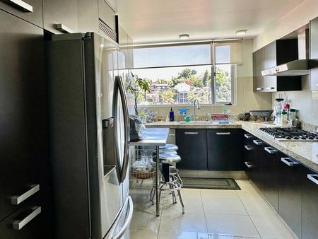 El departamento ofrece confort y amplitud. Situado en calle cerrada; cuenta con una amplia sala y comedor con ventanales que permiten la entrada de luz natural y ofrecen hermosas vistas a la ciudad, además de un bar integrado perfecto para reuniones sociales. Dispone de área de T.V., tres recámaras, cada una con baño completo y vestidor, brindando independencia y comodidad a cada miembro de la familia. La cocina es espaciosa. Cuenta también con área de lavado de buen tamaño y cuarto de servicio. Todo el departamento ha sido remodelado, listo para habitarse, y dispone de dos lugares de estacionamiento.