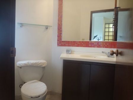 2do nivel, 3 recamaras con closets dobles, la principal con baño completo integrado y terraza. Otro baño completo para las 2 recámaras. Asoleadero para gym. Mantenimiento de $1,850 pesos incluido en la renta mensual de $24,000 pesos.