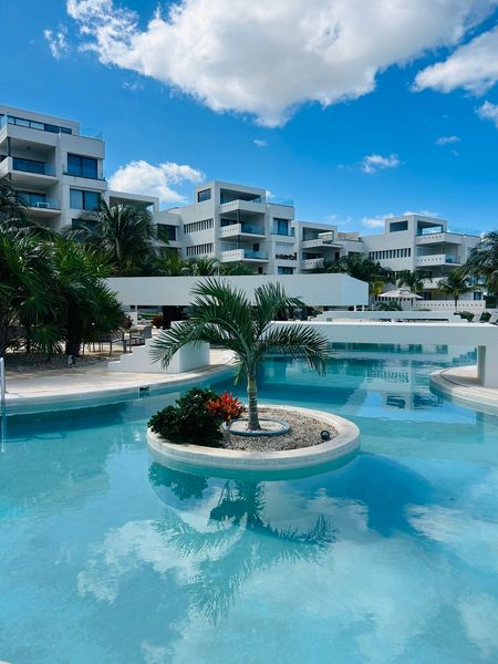 3 albercas, pool bar, casa club, kids club, salón de eventos, seguridad 24/7, marina, restaurantes, solarium y centro comercial.