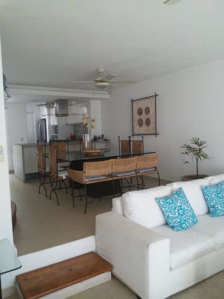 Casa en condominio de 13 casas en la Marina de Ixtapa, a 5 mins de la playa caminando, con vista a la marina. La casa está en 3 pisos, tiene 3 recámaras, la principal con baño y las otras dos comparten baño , una de ellas es muy chiquita. Aparte tiene una suite con baño completo y jacuzzi. Tiene la cocina abierta, lavanderia y cuarto de servicio sin baño , las muchachas usan el de la estancia que es completo.Cada villa tiene muelle privado. El condominio tiene un jardin grande y alberca. Mtto: $ 10,500 pesos