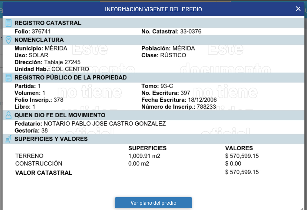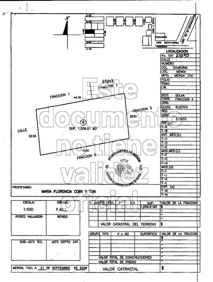 Ubicación catastral: Tablaje 27245 (INSEJUPY – Mérida, Yuc.)