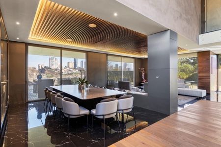 • Sala y comedor con ventanales de piso a techo y acceso a la espectacular terraza. Con chimenea de gas